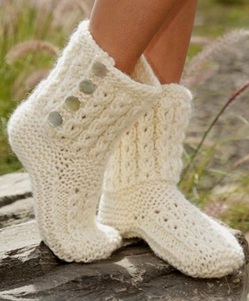 Сапожки спицами в пошаговой подборке с описанием и интересными фото, связать не так уж сложно. Такое рукоделие по плечу и для начинающих мастериц. А уж сколько вариантов выполнения этого изделия – не сосчитать. Этот вид обуви заслуженно пользуется популярностью, поскольку вяжется довольно легко и быстро, позволяет утилизировать остатки ниток и пряжи и дает возможность экспериментировать с цветами и узорами. Не говоря уж о том, что является приятной альтернативой прочей домашней обуви – резиновым шлепанцам, или засаленным тапкам.