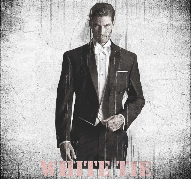 White Tie – это дресс-код, который требуется на самых торжественных встречах. Очень важен выбор цвета каждой части комплекта.