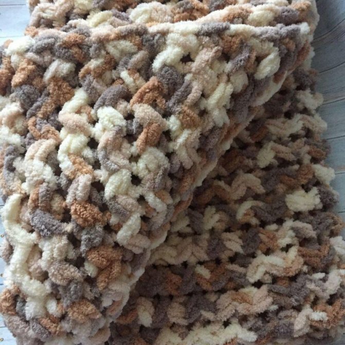 - Чтобы плед был готов за короткий промежуток времени, нужно приобретать пряжу крупных размеров;