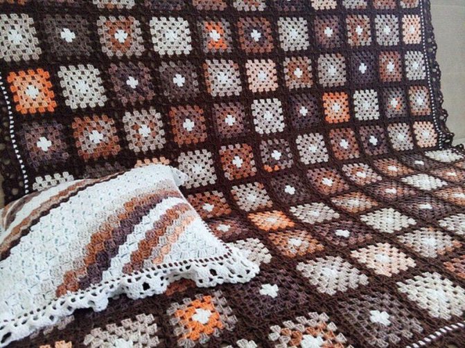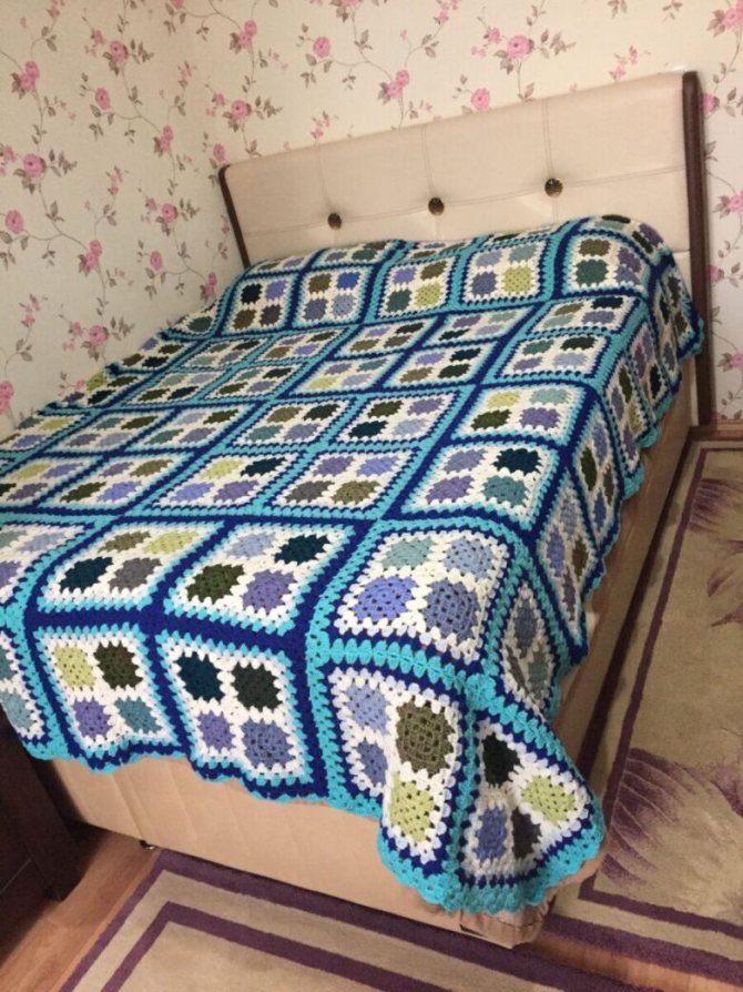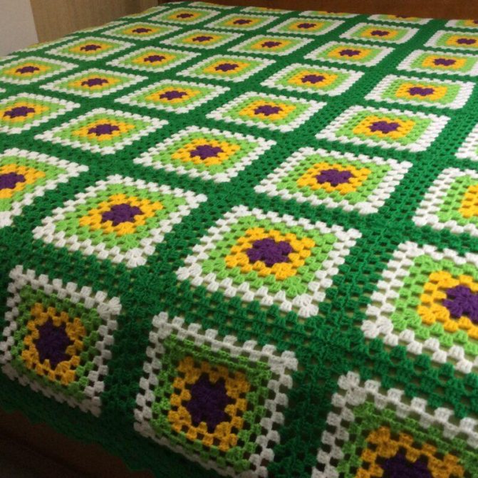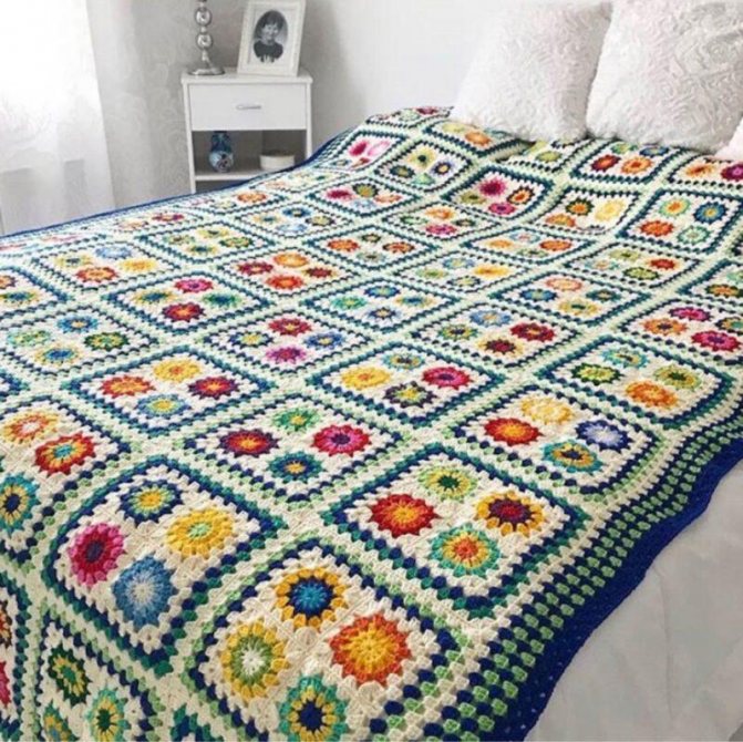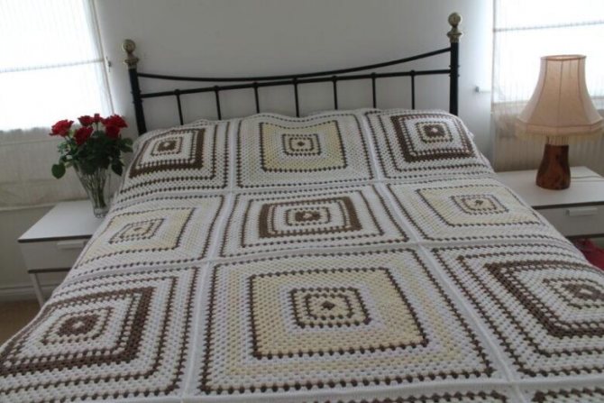 Плед крючком из квадратных мотивов