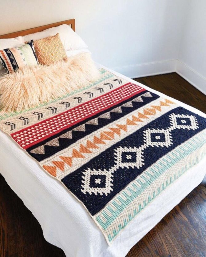 С помощью крючка можно создать огромное количество разнообразных орнаментов. Процесс вязания покрывала крючком занимает много времени, поэтому нужно запастись терпением.