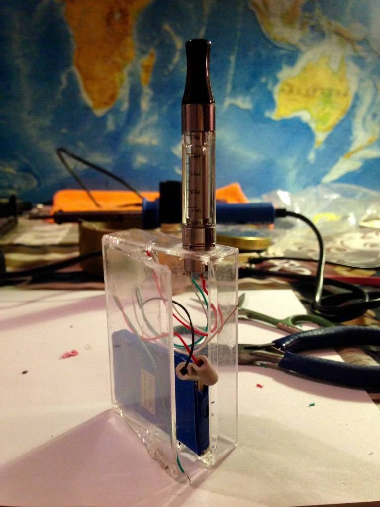 Вот и все! Осталось лишь присоединить испаритель и аккумулятор — получается простая электронная сигарета, которую можно парить.