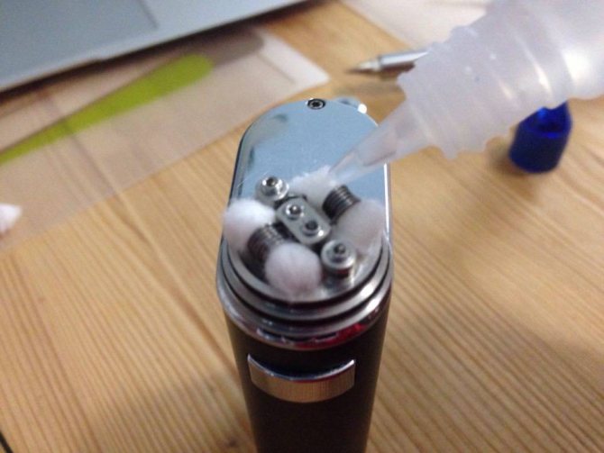 Теперь мы имеем самодельную и безопасную версию боксмода и атомайзер, который намотан спиралью. Теперь требуется только готовая жижа – ее также можно легко купить, или подойдет жидкость для электронной сигареты, сделанная самостоятельно.