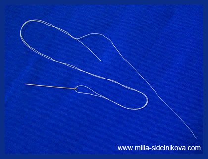 Но прежде чем завязывать узелок нужно вдеть нитку в иголку.