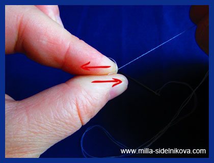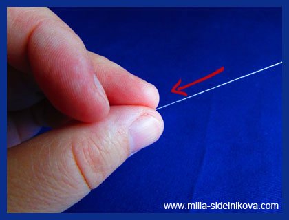 Зачем вообще нужно завязывать узелок на конце нитки? Для того, чтобы нитка закрепилась (зацепилась) за ткань. И держалась там крепче, надежнее.