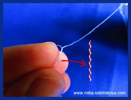 и зажатые между пальцами, уже две нитки, начинаем прокручивать одну вокруг другой.