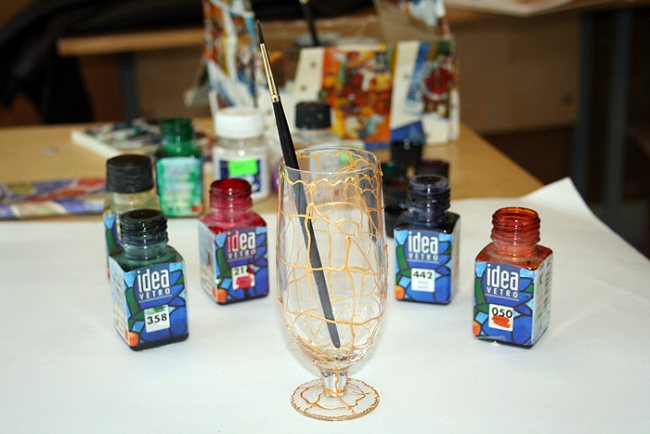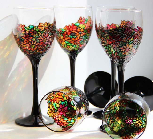 Грамотное нанесение рисунка витражными красками на бокалы постоянного пользования