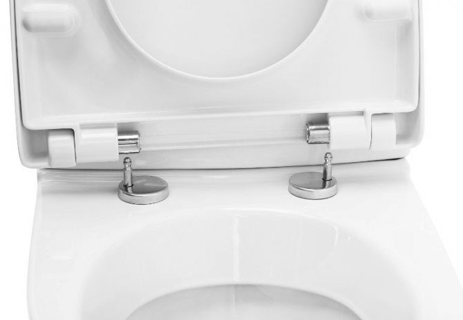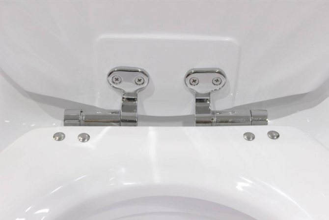 Фото 2. Крепления для крышки унитаза бывают пластиковые, металлические и взаимодополняющие. Наиболее распространены металлические, так как они более прочные.