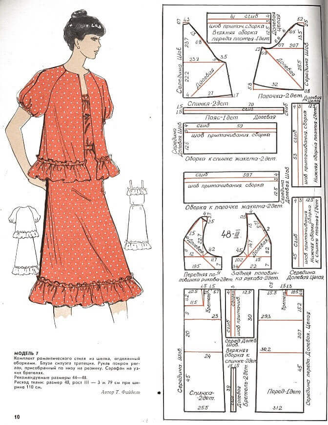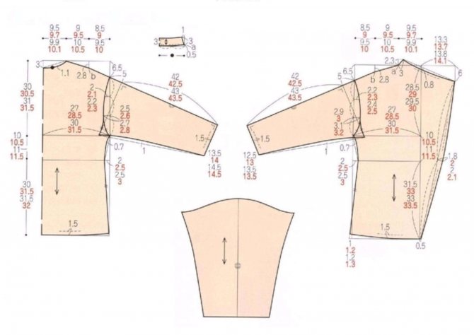 Прибавки на напуск ткани и расстояния, на которые при моделировании будем раздвигать детали — величины не фиксированные, они выбираются исходя из свойств ткани и степени желаемой пышности рукава. Поэтому вернее всего, после построения выкройки (выполнения всех этапов моделирования), протестировать выкройку: предварительно отшить образец рукава из макетной ткани, близкой по свойствам ткани вашего будущего изделия, и, в случае необходимости, внести корректировки.