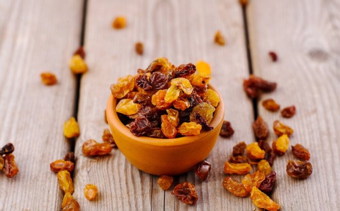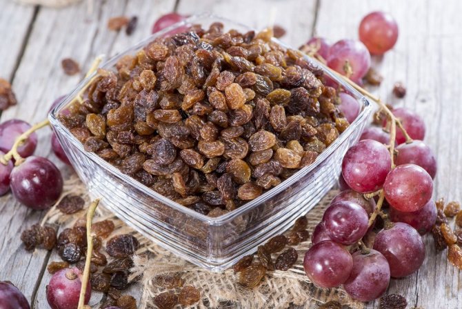 - железо, которое помогает справиться с анемией, благодаря чему изюм полезно есть беременным и тем, кто пострадал от сильной кровопотери;