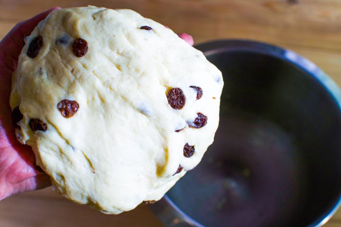 - После того, как изюм просохнет, обваляйте его в муке перед тем, как положить в тесто.