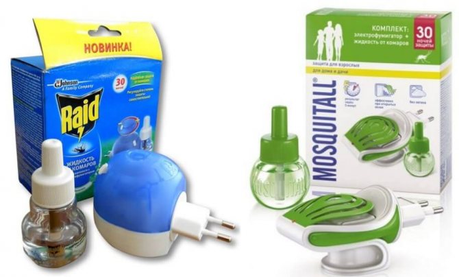 Работают на основе нагревания пластин или жидкости, издающих ядовитые пары. Для работы устройства требуется подключение к электросети. Вещество в пластинах считается нетоксичным, однако производитель не рекомендует находиться ближе чем на 1 метр детям, аллергикам, астматикам.