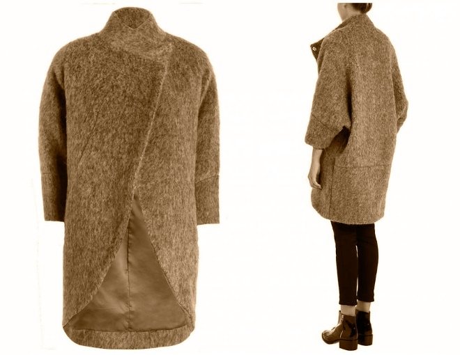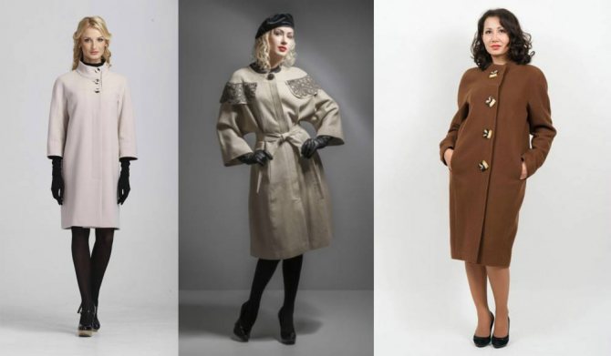 - Пальто «оверсайз». Просторная модель, силуэт основан на прямой линии. Воротник типа «стойка» имеет широкую горловину.