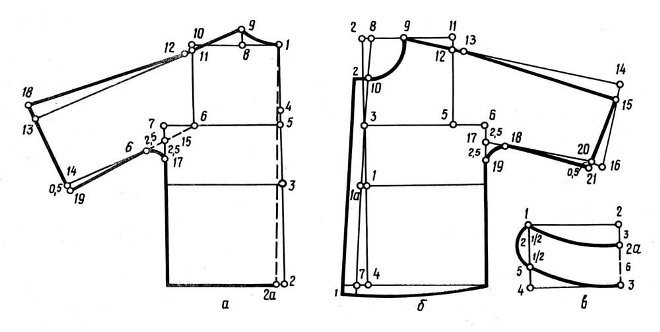 - верх передней рукавной части объединяется с полочкой, а верх задней – со спинкой;