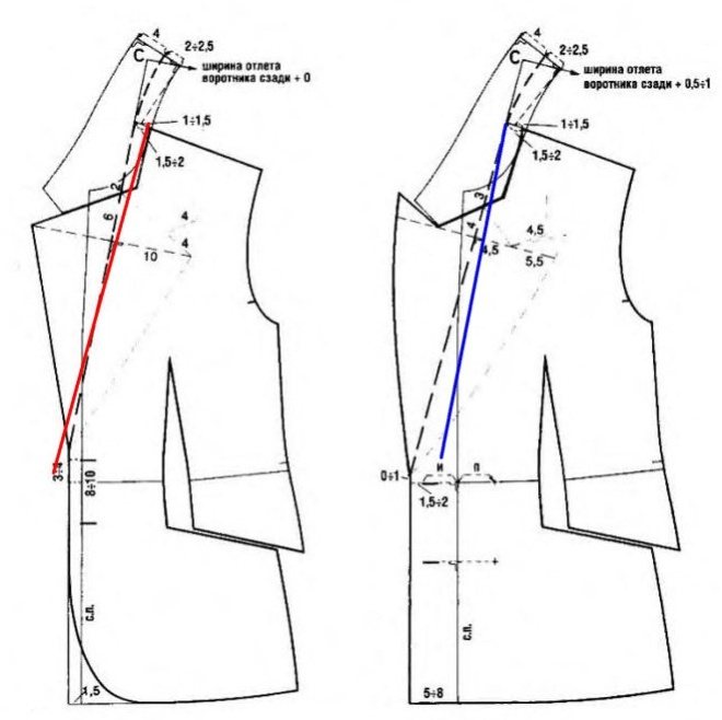 - средний шов рукавной основы сдвигается на 2 см в сторону спинки;