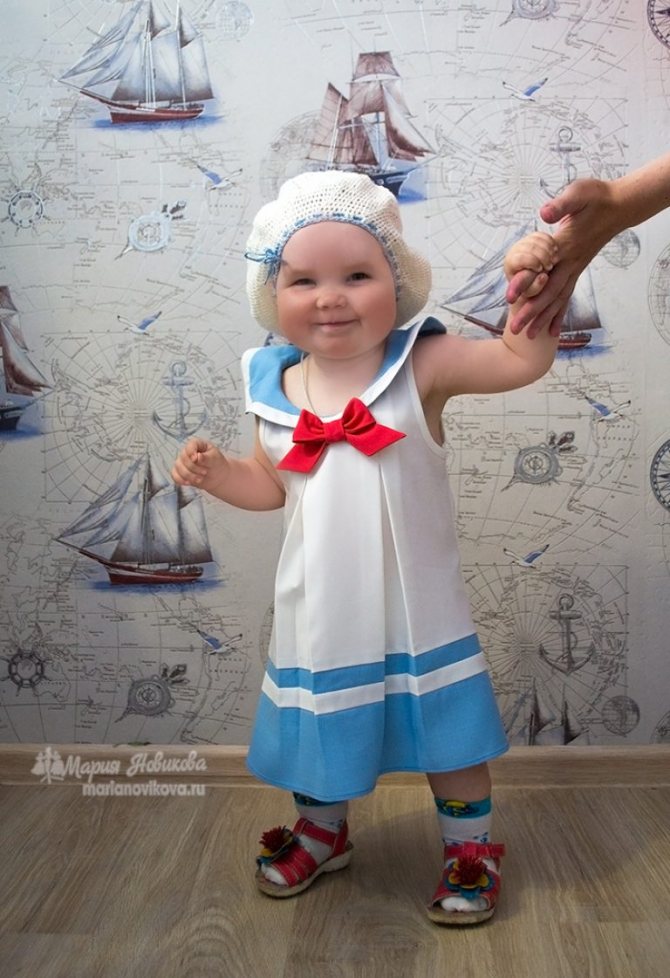 Это простое детское платьице в морском стиле можно сшить как на 1 годик, так и на возраст до 2-3-х лет. Мастер-класс оптимально подойдёт начинающим швеям!;)