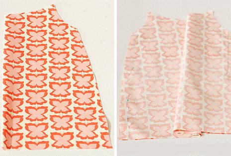Перегибаем полочку и спинку посерединке и складываем пополам, совмещаем боковинки и скалываем плечевые срезы