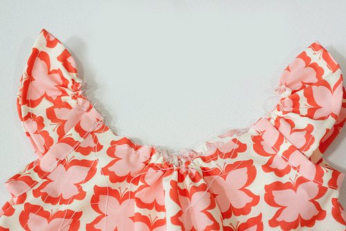 Удаляем нити сборочки и намёточные нитки. Выворачиваем платьице на лицевую сторону.