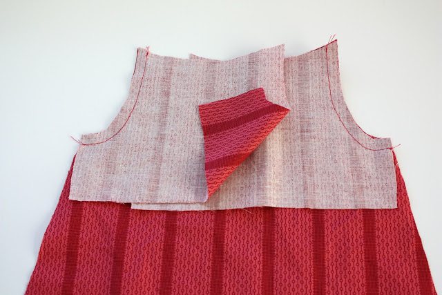 Примётываем готовую деталь пояска к полке кокетки до боковых швов.