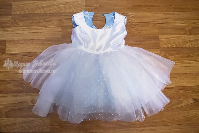 Платье-облачко готово! Взяв за основу выкройку данного платья для девочки на 1 год, вы легко сошьёте, например, новогоднее платьице снежинки в детский сад, наряд на Новый Год.