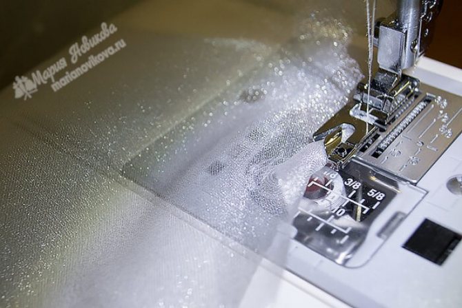 А теперь делаем всё то же самое с подкладочной тканью. В данном случае фатиновую сеточку мы расположили между слоями, чтоб она не цеплялась за колготки и не натирала ножки крохи.