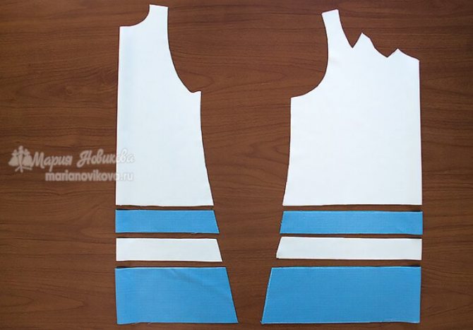 Вырезаем деталь кокетки с учётом припусков на швы.