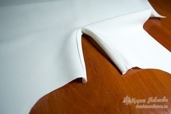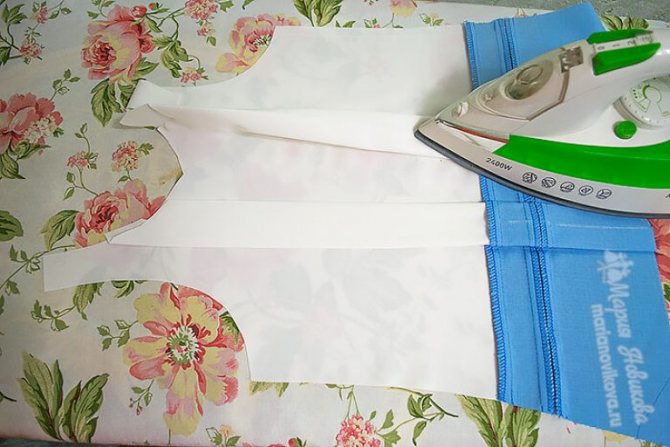 Обрабатываем боковые швы, припуски заутюживаем по направлению к спинке.