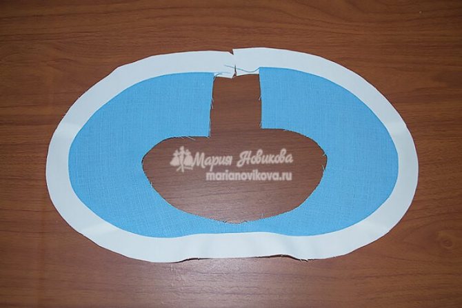 Проклеиваем верхний воротничок с изнанки флизелином.