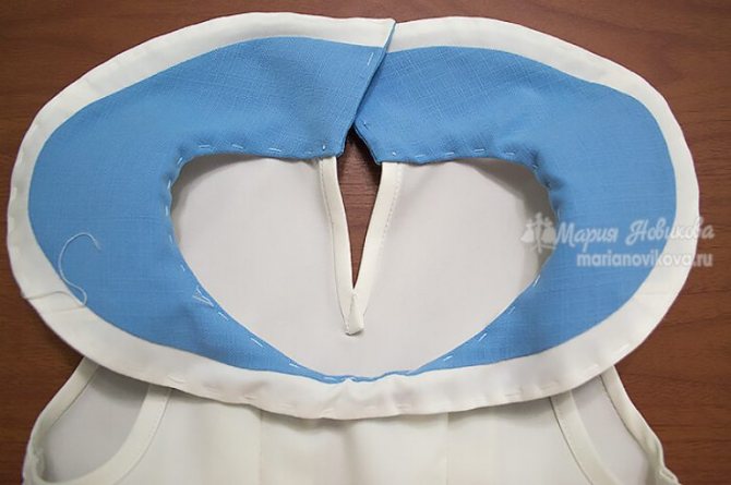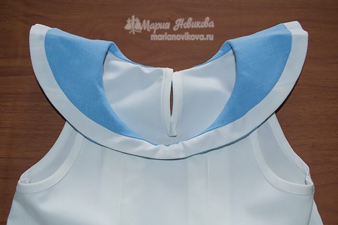 Это делается для того, чтобы на готовом платьице нижний воротничок не выглядывал из-под верхнего.