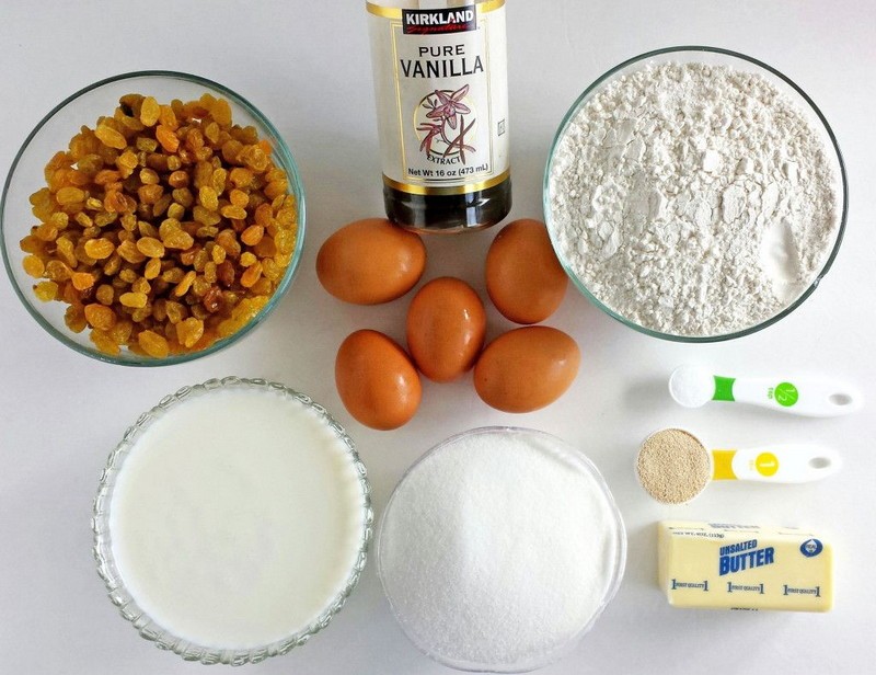 Кроме того, вам понадобятся дрожжи, около полулитра качественного молока, 1 килограмм муки, 200 граммов натурального сливочного масла и 6 куриных яиц среднего размера.