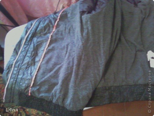 - Через полученное отверстие выверните всю куртку, если на ней имеются какие-то закрепки, то подпорите их осторожно с помощью ленточек под проймой.