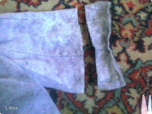 - Прострочите на машинке, выверните изделие, зашейте отверстие, манжету выверните на лицевую сторону.