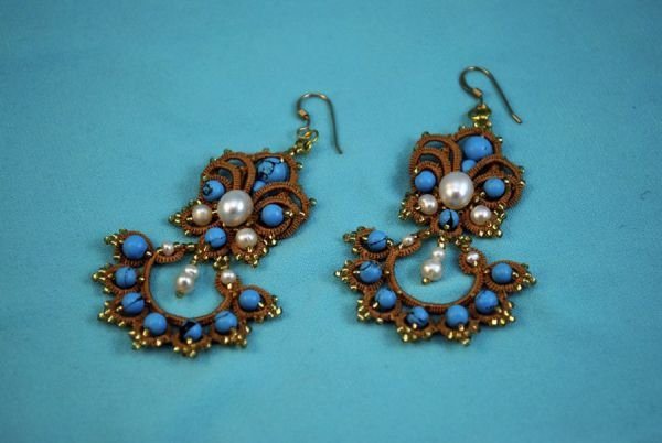 Серьги фриволите выглядят точно также, как и украшения из металла. Работу талантливой рукодельницы крайне сложно отличить от изделия, над которым трудился опытный и профессиональный ювелир. В этом и есть особенность данной техники. Так как освоить ее может абсолютно каждая девушка, а украшения получаются такими, как-будто вы купили их в дорогом и модном ювелирном магазине, хотя эти серьги на самом деле изготовлены из подручных материалов, а не из ценных металлов и драгоценных камней.