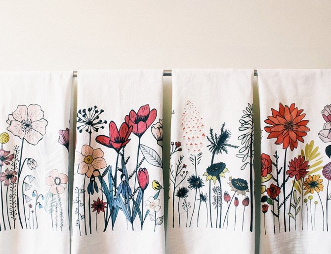 Для кухонного полотенца больше подойдут цветастые, пестрые ткани, так как на них въевшиеся пятна будут менее заметны.