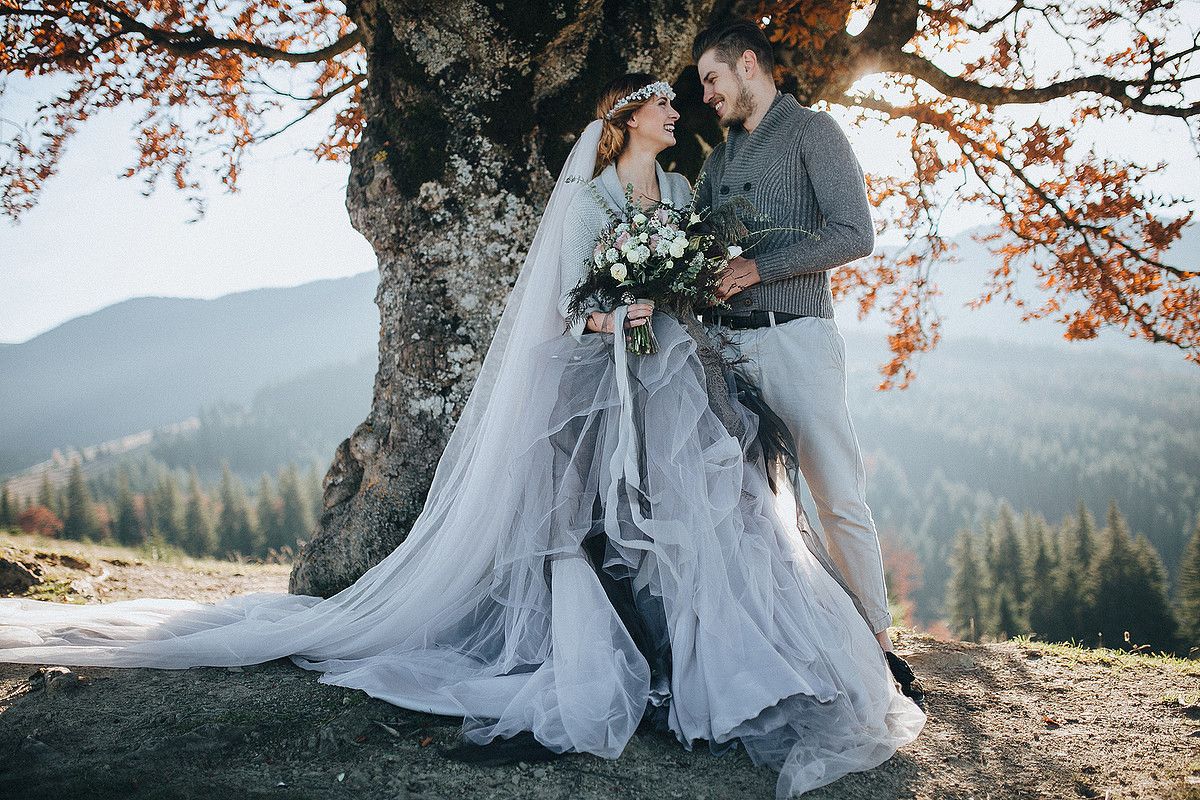 Одежда должна быть выполнена из легких и струящихся тканей. От многослойных материй лучше отказаться — в жару они неуместны. Как вариант: для невесты — легкое шифоновое платье с открытой спиной и плечами. Для жениха — рубашка с брюками и жилетом. В прохладную погоду образ дополняют пиджаком.