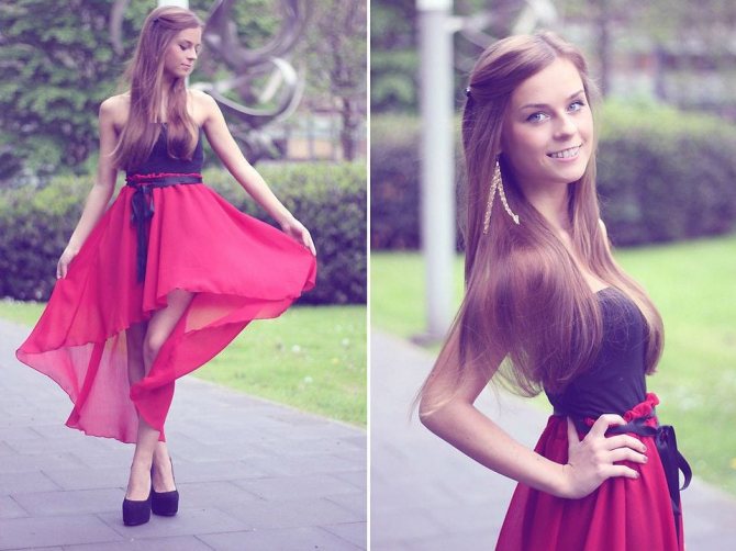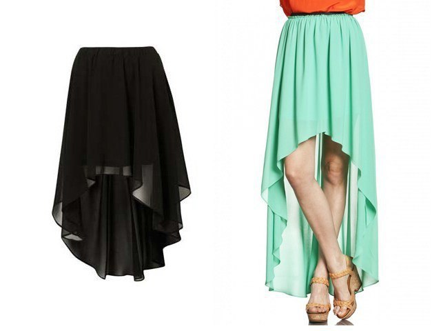 Юбки и платья с асимметричным подолом — коротким спереди и длинным сзади (подробно о модных моделях и вариантах комплектации здесь), начали входить в моду еще в прошлом году, но, к сожалению, отыскать их на прилавках магазинов до сих пор крайне сложно. Однако выход найти можно из любой ситуации. Так, можно отправиться за покупками в онлайн магазины или попробовать сшить юбку-маллет самостоятельно. Для этого понадобиться выкройка, пояснения к ней и кое-какие рекомендации. Предлагаю рассмотреть самые лучшие варианты.