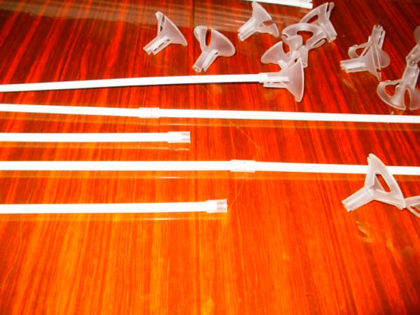В этом случае сначала пристрачиваем ленту, создавая «каналы». Затем в них просовываем соединённые встык палочки.