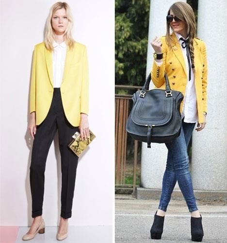 Пиджак помогает дополнить деловой, повседневный или романтический образ, но если женщина желает подчеркнуть свою индивидуальность, а также подарить себе и окружающим летнее яркое настроение, то жёлтый пиджак — именно то, на что следует обратить внимание.