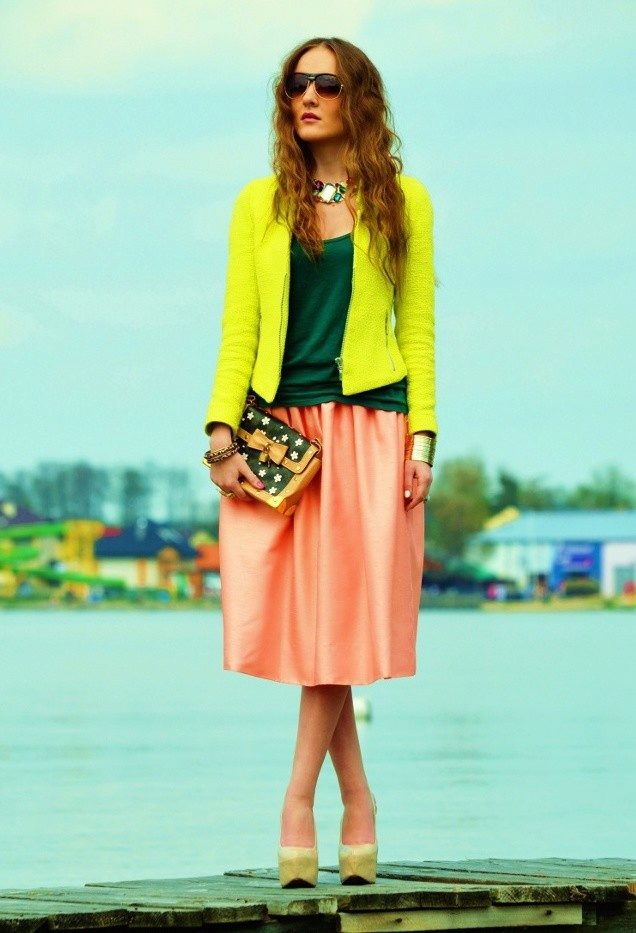 Определившись, с чем носить жёлтый жакет на свидании, необходимо подобрать вещи правильного цвета.